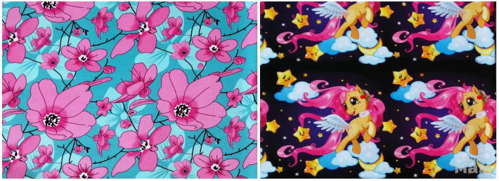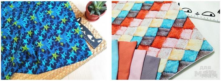 облегченные трикотажи на шапки и снуды - звезды цветные для девочек на тёмном, на светлом, пони на светлом, пони на темном