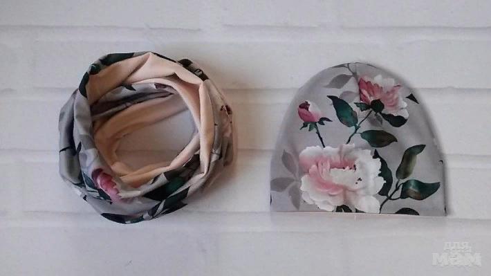 Комплекты шапка + снуд легкий принт или однотонный трикотаж весна -  400 р.