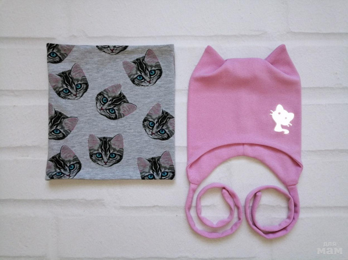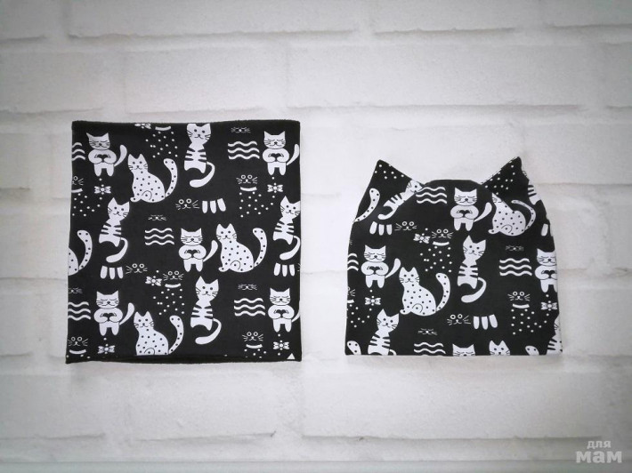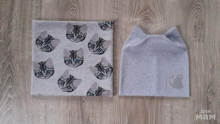 Шапочка с ушками и снуд кошки - голубоглазки