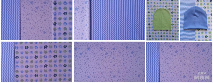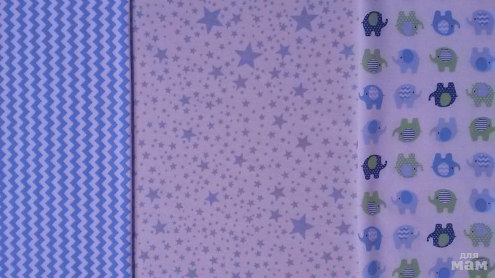 зигзаги голубые, звездочки голубые на белом, слоники синие, слоники розовые - облегчённый
