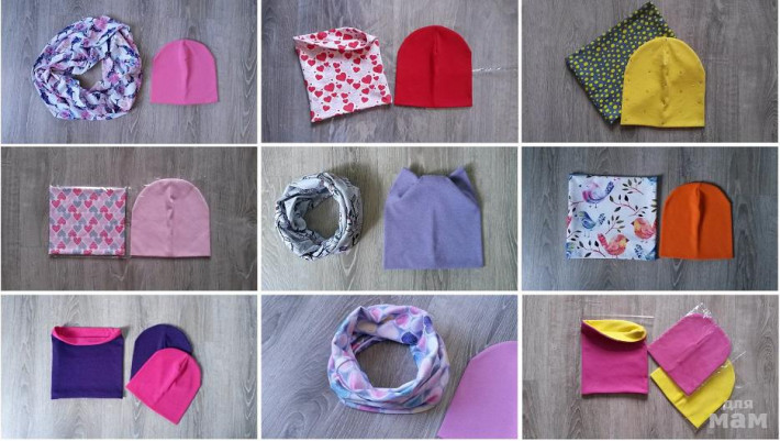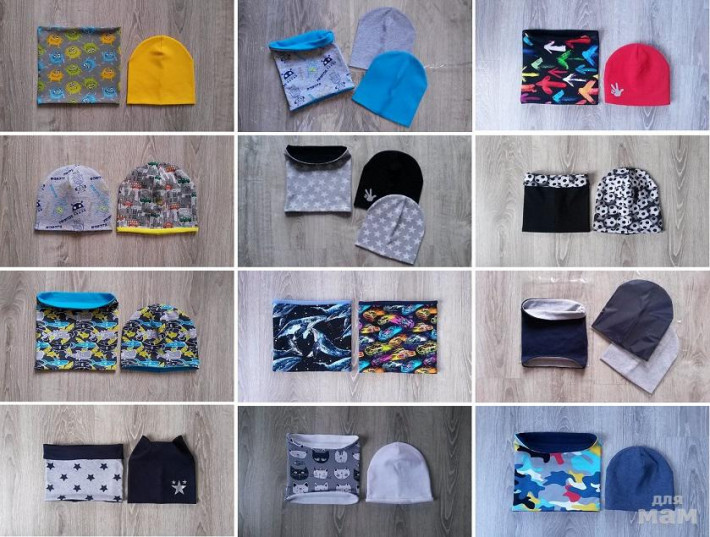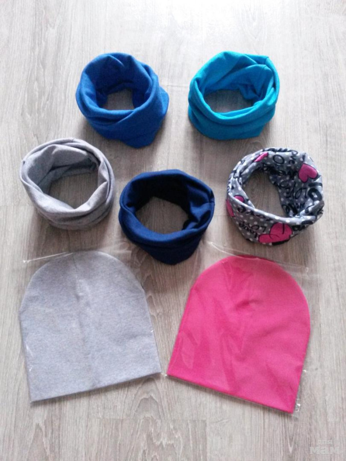 Выбор цвета для снудов и шапочек. Размеры разные.