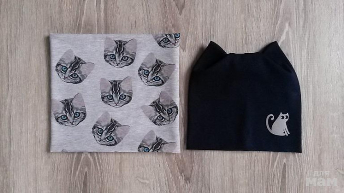 Усы. Легкий трикотаж на тёплую весну или летний прохладный вечер. С утеплителем флис или однотонный трикотаж можно носить сейчас. На шапки, снуды.