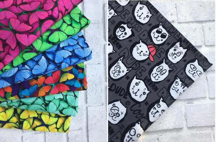 Бабочки мятные два вида -теплый принт на снуды и шапки и легкий на повязки, летние шапочки и снуды. Один в один.