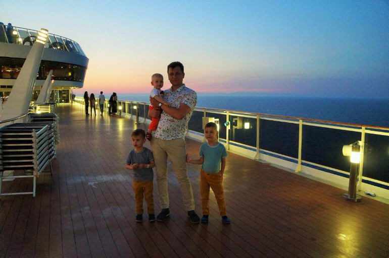 В круизе мы были первый раз, готовились тщательно, много читали, выписывали, советовались с Катюшей, но всего учесть не получилось. Были маленькие шероховатости, но они незначительны. И конечно, я понимаю, что многие спросят: КАК??? Как можно отдыхать с тремя маленькими детьми? Скажу однозначно: МОЖНО! И нужно! Если, конечно, правильно настроиться! Конечно, валяться с пивком у бассейна мы не валялись, но все увидели, посмотрели, детям показали. Они у нас, как и все дети, иногда, вредные и капризные, но всегда находились с нами, и мы научились договариваться. Папа был cо старшими, а я с маленьким. Он купался с ними в бассейне, кормил их, я же ухаживала за маленьким Алешкой. Если малыш уснул, все проще - по очереди купаемся или кайфуем.