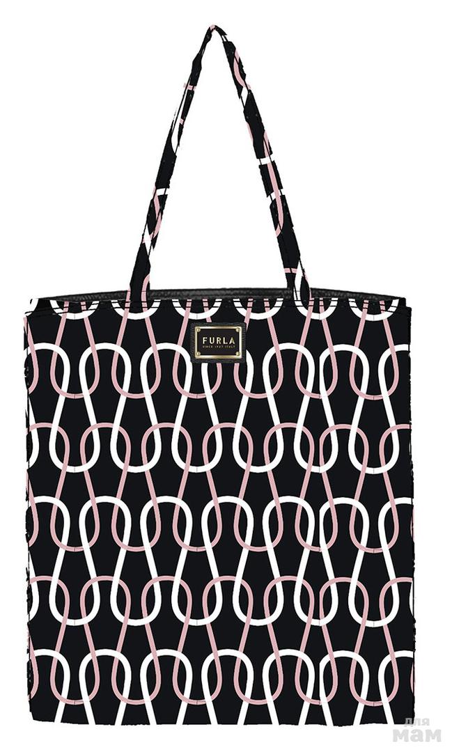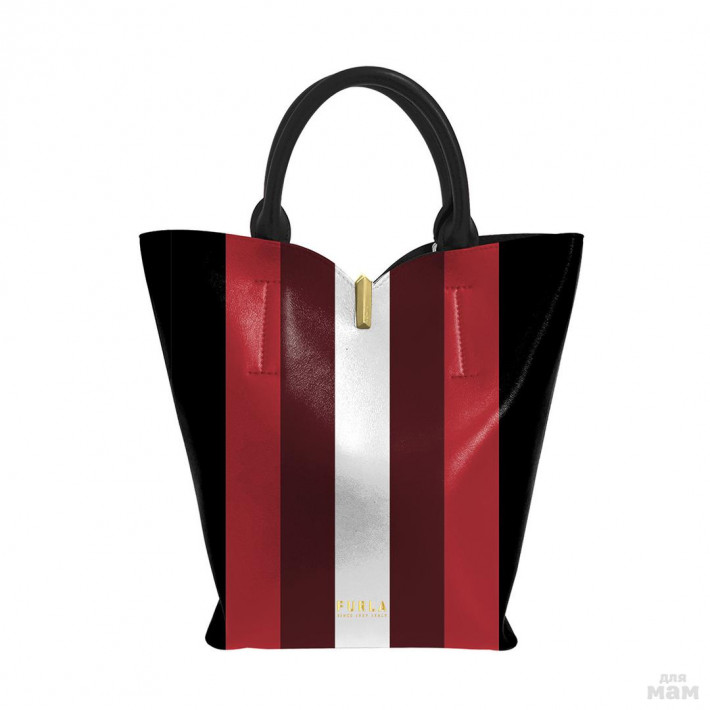FURLA RIBBON M TOTE BACD W59 ARES ST.RIGHE+ARES P13 NERO+TALCO+FUOCO+BURG UNDY 18650 P
