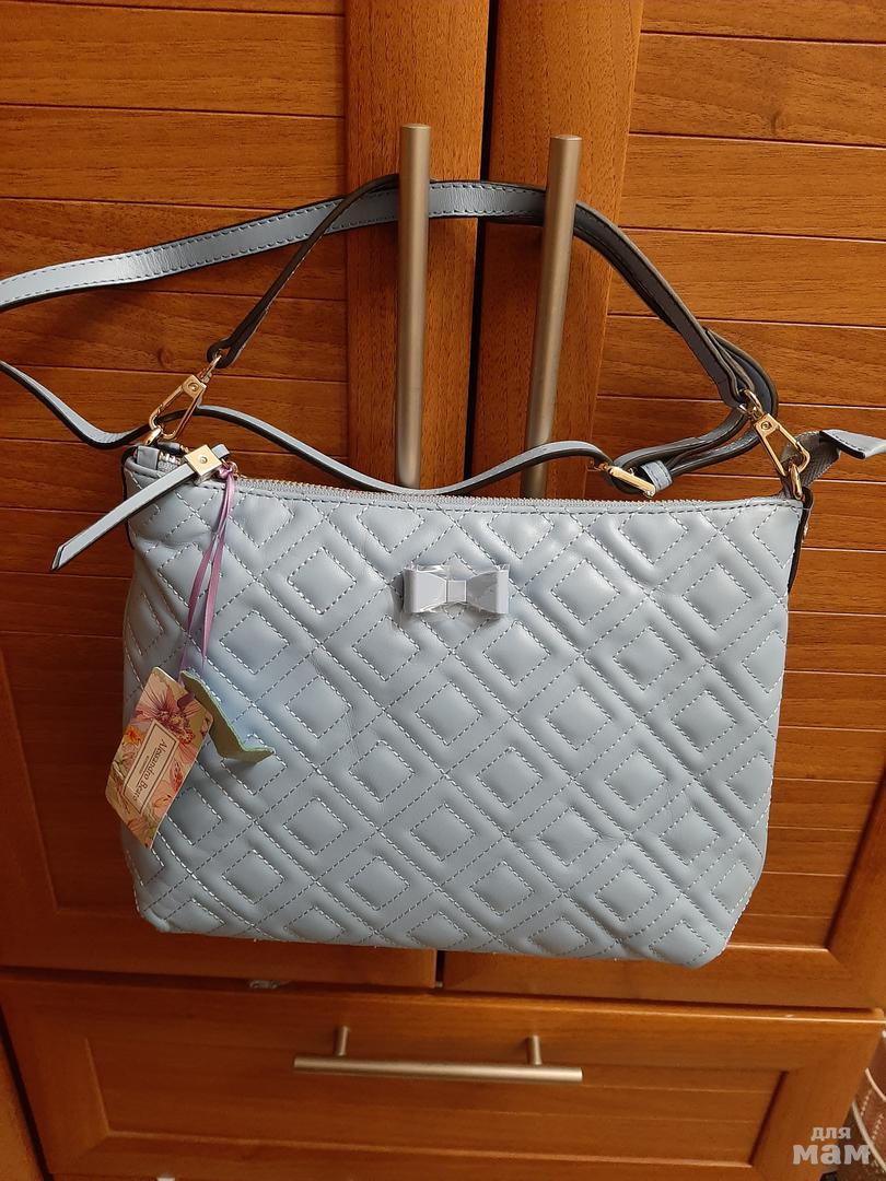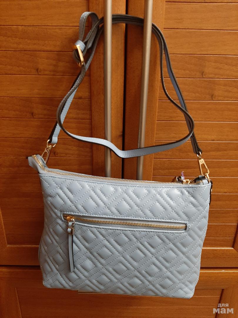 Спасибо большое Насте. Сумочка в голубом цвете, на фото как сероватая. Уже давно беру у Насти, все устраивает, быстро, надежно, всегда ответит.