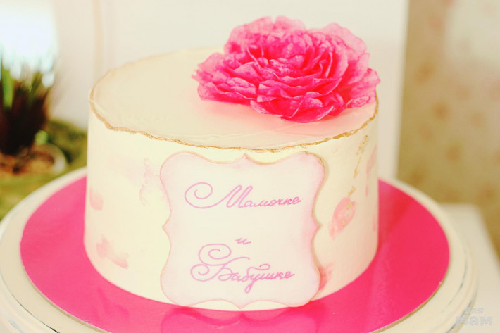 Внутри «Наполеон» с кремом «Пломбир». Покрытие-творожный ганаш. Пион из вафельной бумаги.