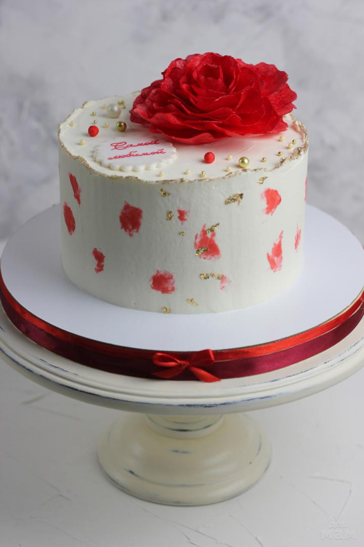 С гранатом) Внутри «красный бархат» (коржи с какао, крем-чиз на сливках). Покрытие-крем-чиз. Вес 2,8 кг. Высота 8 см.