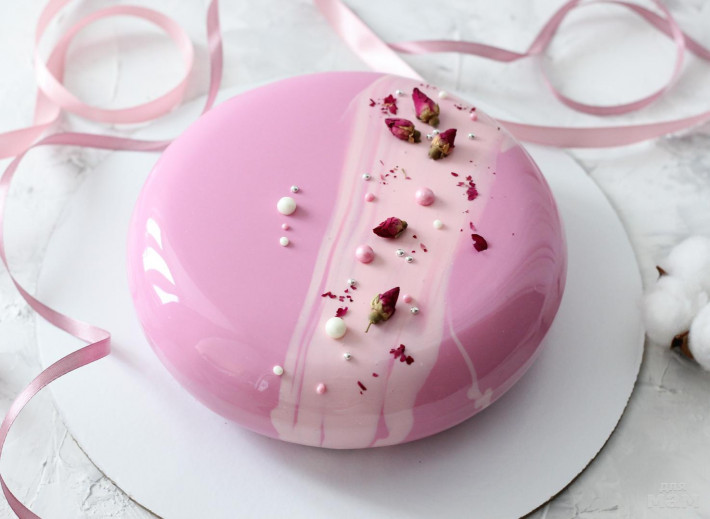Просили с минимальным декором. Внутри «малиновый пломбир». Покрытие-крем-чиз. Декор из мастики.