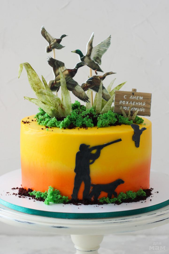 Внутри «три шоколада». Покрытие-крем-чиз. Декор-сахарные картинки, бисквитный мох, травка из вафельной бумаги.