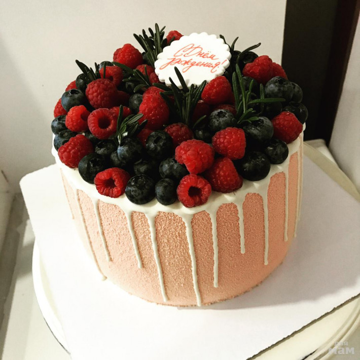 Внутри "молочная девочка" с творожным кремом и малинкой. Покрытие крем-чиз.