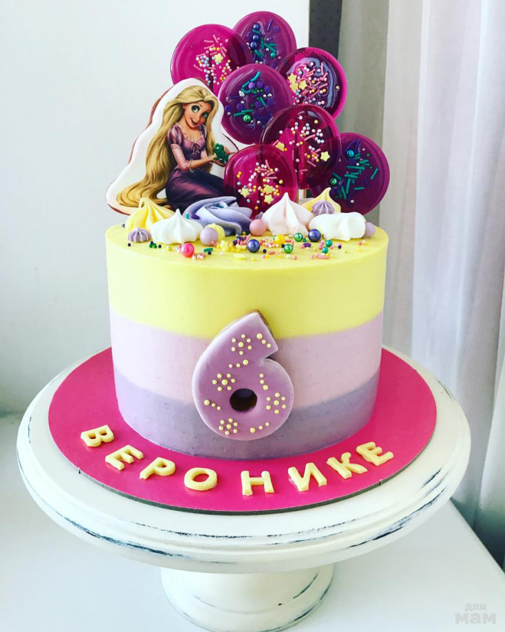 Внутри "молочная девочка" с творожным кремом и малинкой. Покрытие-крем-чиз. Декор-пряники, леденцы, безешки.