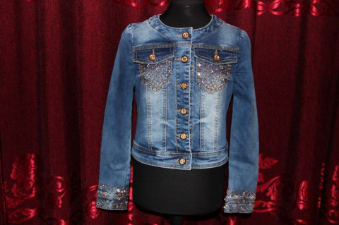 Последние размеры р. 140 и р. 152. Джинсовка со стразами. цена 1800р