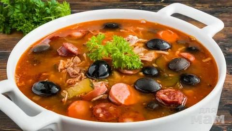 1. Солянка. За счет маринованных и копченых продуктов в ней слишком много соли. Колбаса и мясные нарезки делают суп калорийным и тяжелым для печени.