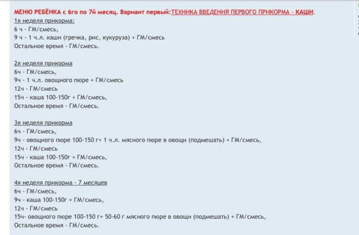 Прикорм,расширение рациона-информация.