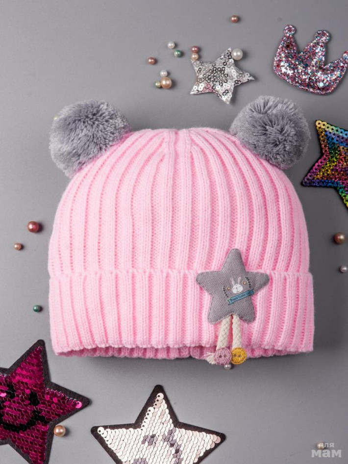 Шапка вязаная для мальчика, два бубончика, на отвороте нашивка с глазками. Размер:47см - 50см (1,5-3 лет)- 199 руб.
