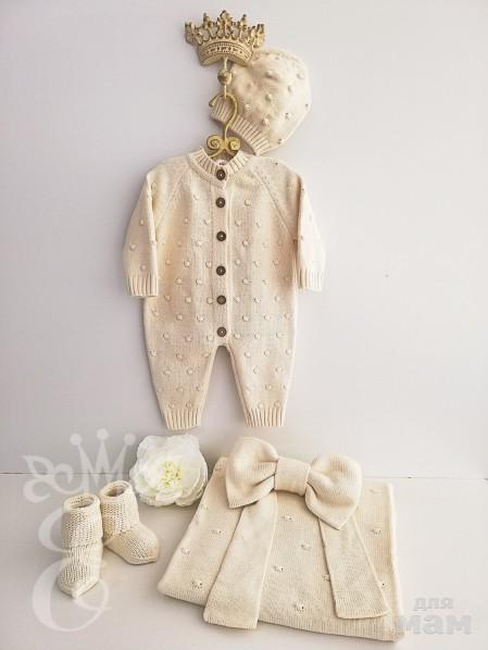 Плед вязанный на велсофте с бантом-завязкой- 1400 руб.