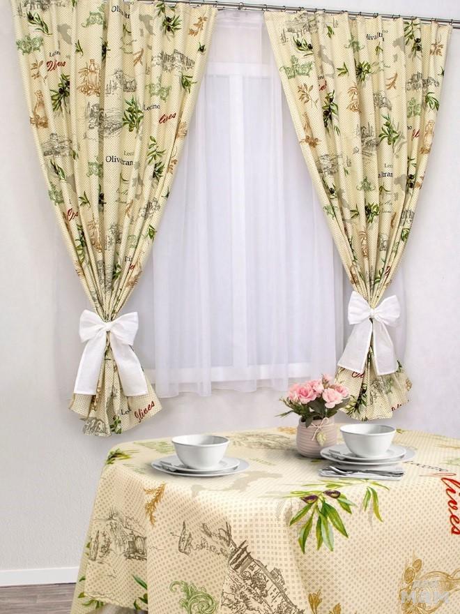 Изысканный дизайн штор дополнит интерьер любой кухни, а натуральная мягкая ткань скатерти и салфеток приятна на ощупь и обладает прекрасным впитыв...