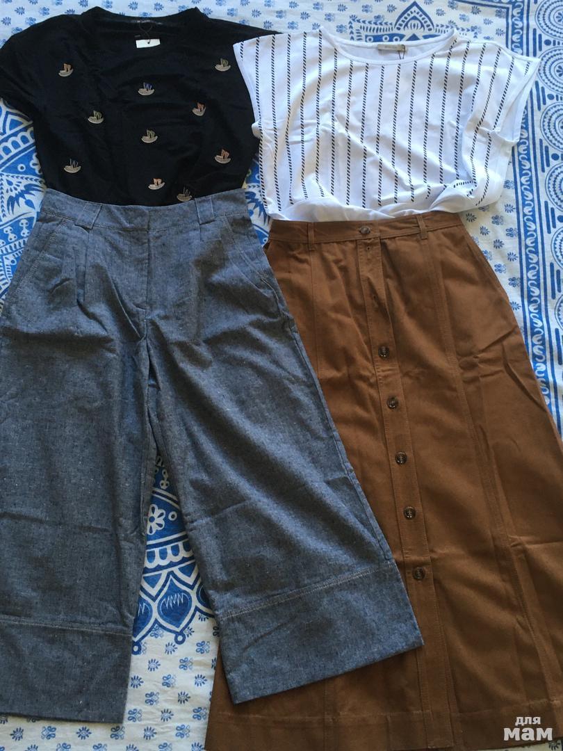 Добрый день! Вета, спасибо огромное за приятные закупки, общение и хорошее настроение от покупок )))) Мои сокровища из Нова Лайн, очень эта марка нравиться и зимой и летом всегда что-то интересное. Футболки р. 42 , низы 44 . Хорошие ткани и крой, строчки все ровные. Кюлоты такой модели взяла 2-ю пару- летом из таких, но бежевых не вылазила - мах комфорта :) Отзыв с опозданием, но ставлю )