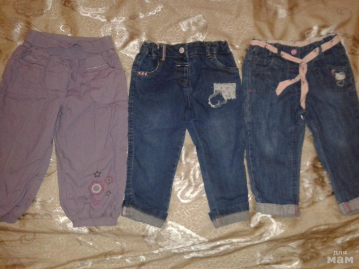 1) Размер 86, Джинсы и брюки с подкладкой. Цена за 3 предмета 900 руб.