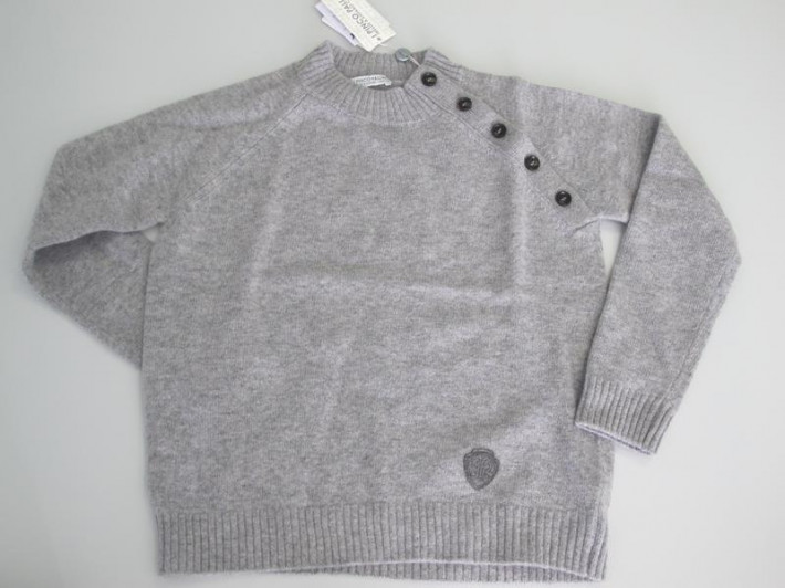 Теплый свитер серого цвета для мальчика с пуговками на плече,