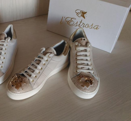 Кожаные кеды L`estrosa с золотистыми пайетками Италия.