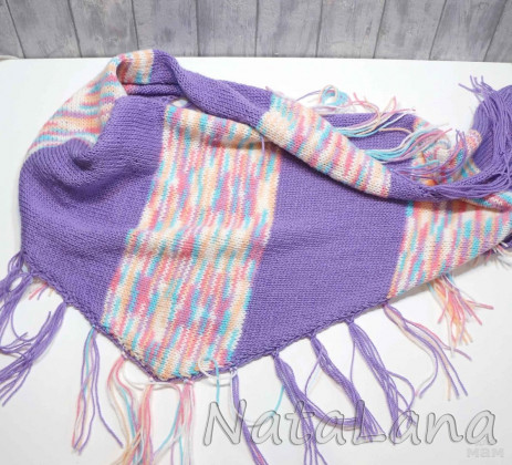 Бактус вязаный (шейный треугольный платок) меланжевый с кисточками, НатаЛана