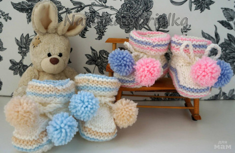 Пинетки с помпонами. Handmade. Готовая работа. Возможен заказ другого цвета.