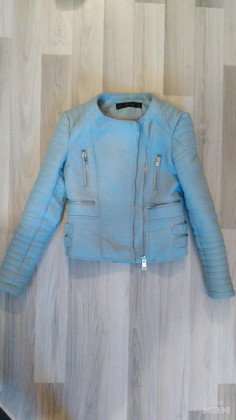 Кожаная голубая куртка zara