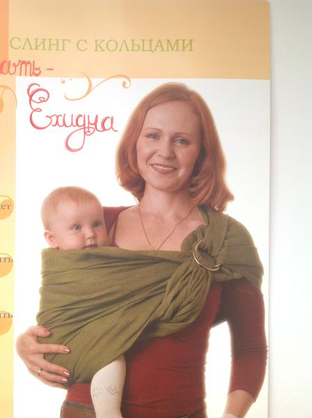 Новый слинг с кольцами "Мать-ехидна", цвет серо-зеленый, рисунок "в елочку" + буклет с рекомендациями. В упаковке.