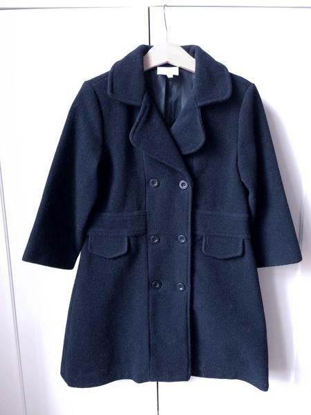 Шерстяное темно-синее двубортное пальто, состояние новой вещи, маркировано на 3 года, 70% шерсть. Торговая марка Girandola существует с 1964 года и производится только в Португалии. Длина по спинке 64 см, длина рукава 35 см, ширина на уровне пройм 32 см.