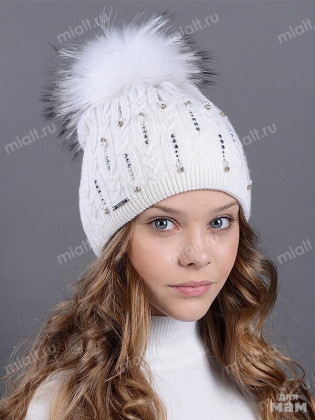 Двойная шапочка Mialt с натуральным помпоном 54-56 новая!
