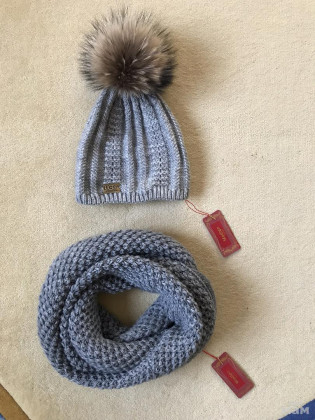 Утеплённая шапка на флиссе в комплекте со снудом, новая!