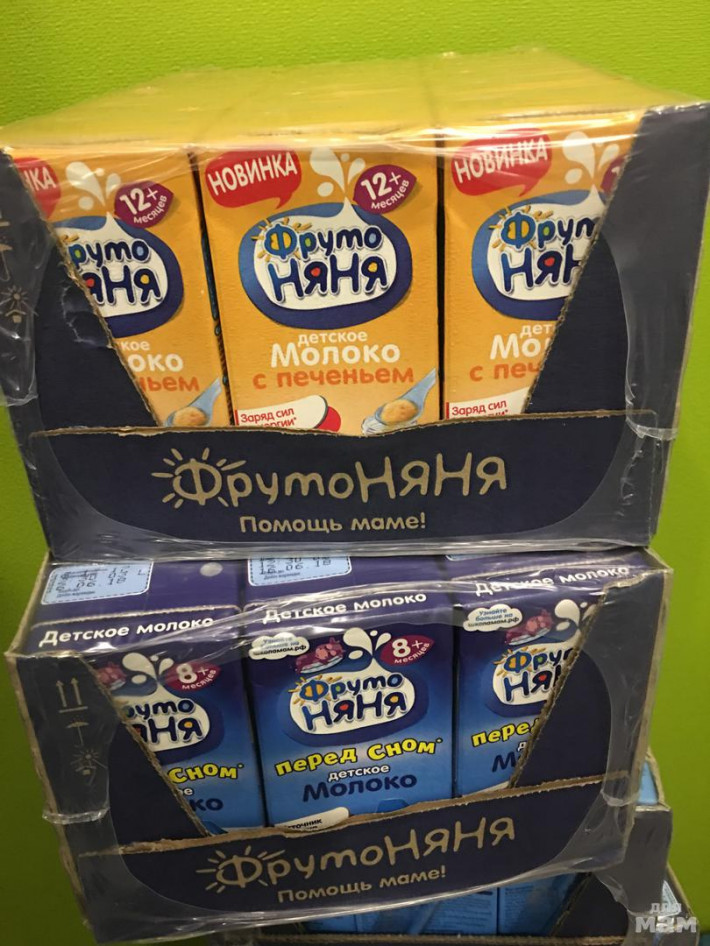 Фрутоняня молоко с печеньем обычное молоко и молоко с малиной. В блоке 18 шт по 0,2 л