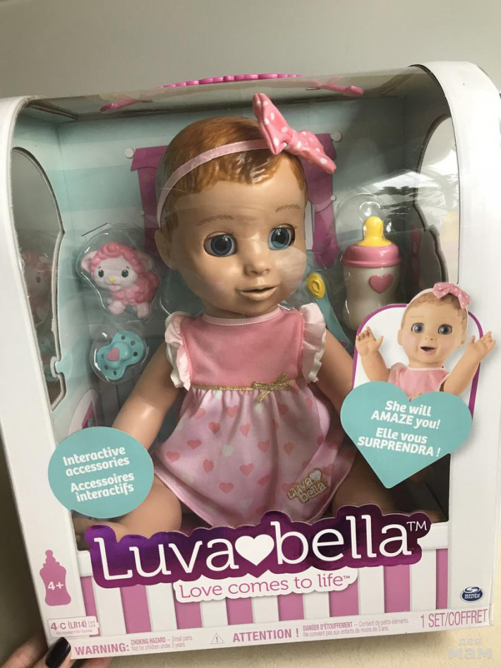 Это интерактивная Кукла . Говорит слова, произносит животных если поднести игрушку. Моргает, пьёт бутылку и многое другое. Кому нужно видео напишите мне, я скину!