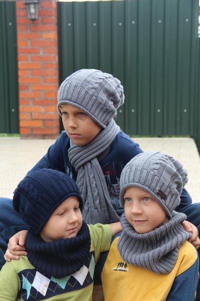Связала такой комплект ему, из шапочки и снуда, к новой графитовой курточке!
