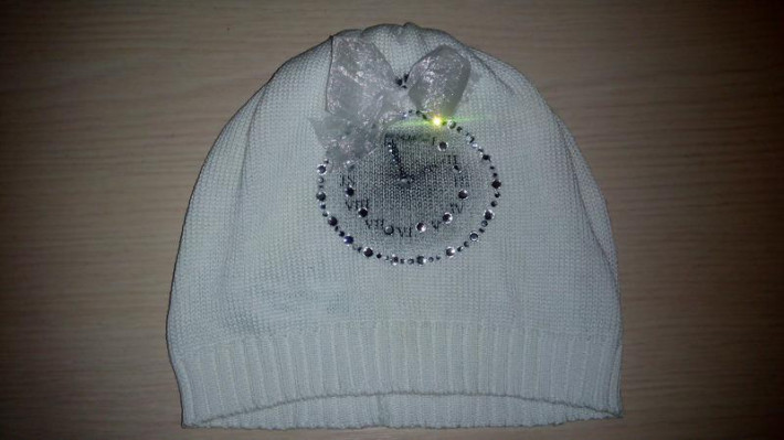 комплект с короной самовяз на флисе,стразы горят,помпон оч большой.1600,шапочка белая jacot 46 -48 600 р,белая catya с часами размер 2,1000, комплект серый в горошек monnalisa 24 мес( до 50 см ) 2500