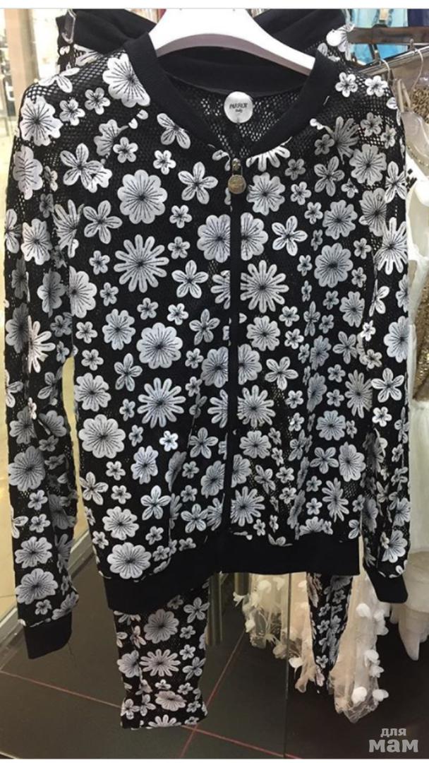 Куртка и штаны из чёрной сетки с объемными цветами, очень эффектный