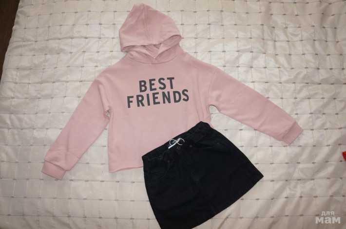 Свитшот р.9 лет в размер идёт, юбочка р.12 лет в размер. ( есть утяжки на поясе) 730 руб. Новое!