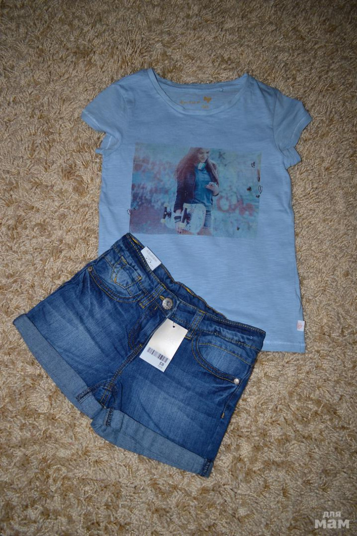 ПОЧТА +100р. новые джинсовые шорты размер 6 - 850р. с бирками. Новая футболка- 600р. маркировка 7. Юбка новая с бирками размер 5-6 большемерит на 6-7 лет- 850р.