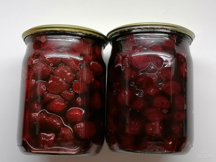 Излишки. Клубника 0,5 и вишня с косточкой 0,5. Ягод очень много, сиропа мало)