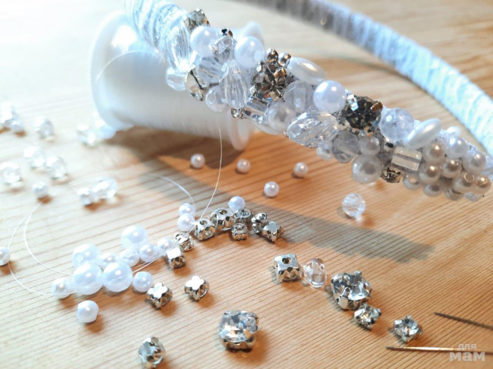 Не могу я нормально отдыхать. Руки чешутся и ломка уже начинается))) Но от бантиков решила чуть отвлечься. Начала ободок. Росшив. Будет ооочень классный. Нарядный, универсальный, для любого возраста.