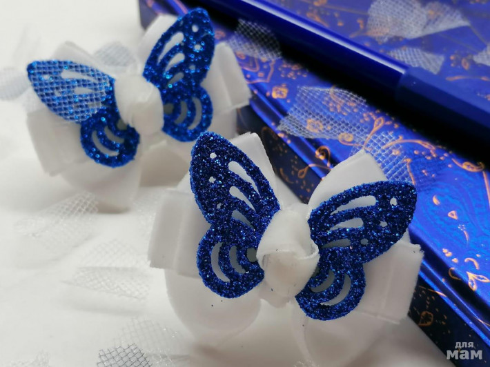 1) Красивые школьные бантики под темно-синюю форму. Размер бантика 9 см, резиночки основы - 4см. Без повтора.