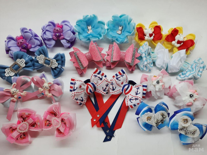 1) Показываю их вместе, так как набором они смотрятся просто божественно. Очень-очень нежно и благородно. Бантики из бархата. Цветочки и бабочки. Большие 7,5 см, маленькие 5см. Резиночки и там, и там.