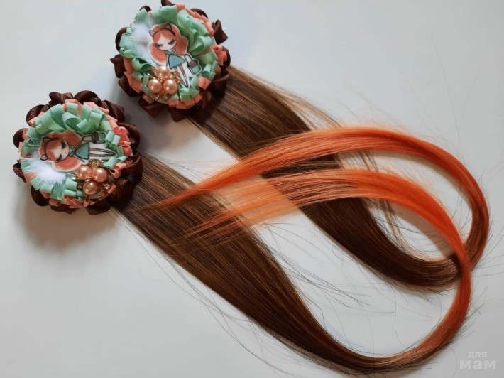 1) Девочка-лиса. Бантики со съемными прядями. Отдельно можно использовать локоны, отдельно бантики. Очень нежный цвет Тиффани! А пряди как настоящий лисий хвост!) Бантики дополнены норочкой и ювелирным декором.