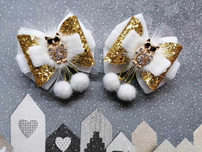 1) Моя новая модель бантиков по индивидуальному МК. Банты, ну очень прикольные и интересные!! Размер примерно 8х7 см. Классно и для хвостиков, и для косичек. Зимний ангел - лепнина с ручной росписью. Атмосфера зимних праздников и волшебства.