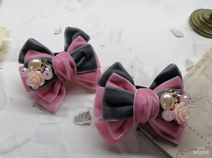 1) Очень классные бархатные бантики серый+розовый. Идеально к Стильняшке новой коллекции. Без повтора.