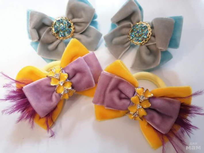 2) В фиолетово-розовых тонах бархатные бантики с норочкой.