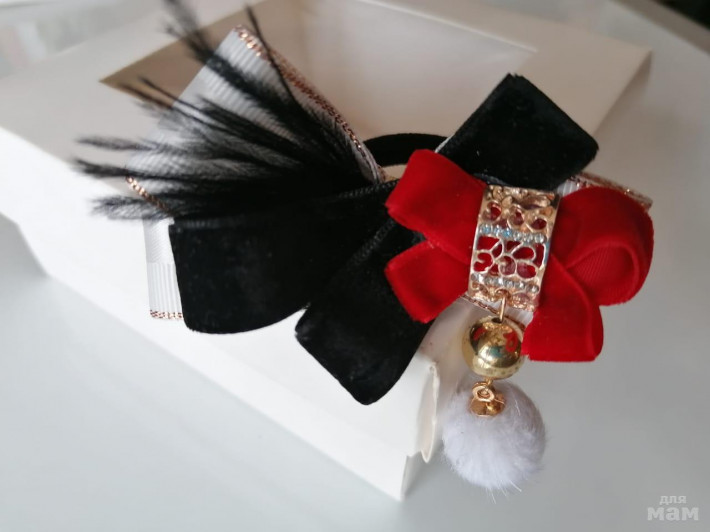 Набор из 6 предметов - галстук, большие бантики (резиночки), маленькие бантики (резиночки) и заколка.