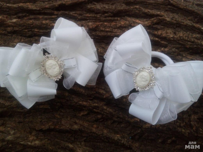 Большие и очень пышные. С органзой и лентой с люрексом. Крепление мега надежное, резинка мега прочная. Размер бантика 10 см. А камелия сама нежность))